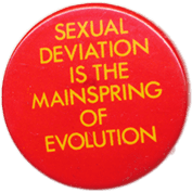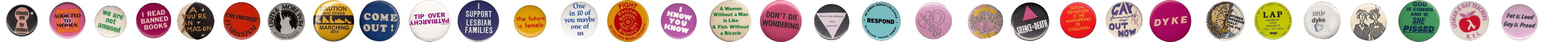 Pins or badges are a way for protest groups and queer community members to represent their sexuality and ideology. They started around the 70s, ranging from vague messages to outright stating their sexuality and beliefs. It was and still is a way to identify other queer people as well as allies of the queer community. They are still being created and used today.